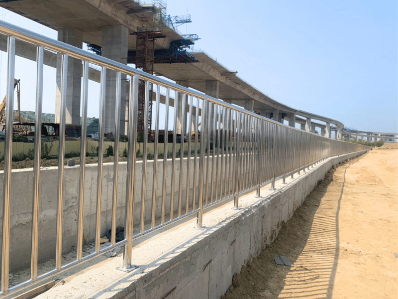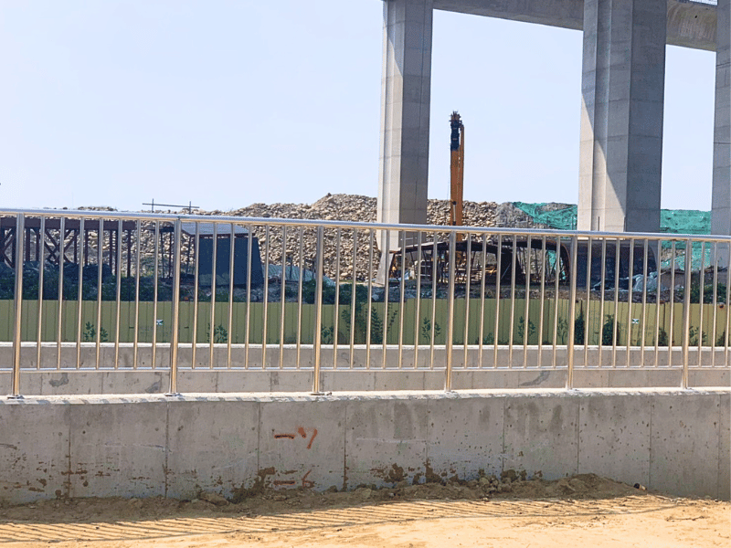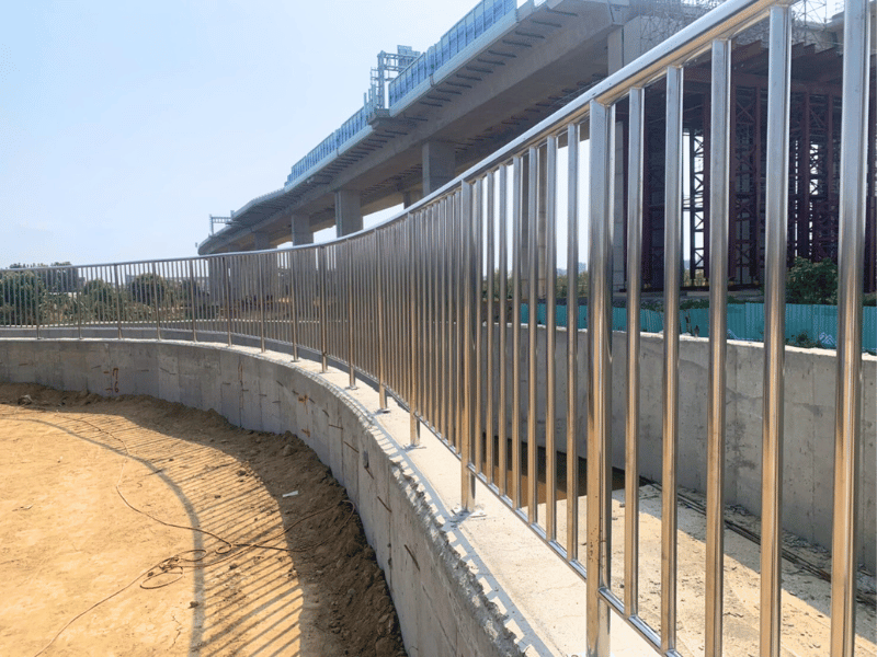 欄杆採用不銹鋼材質製作,具備耐候、防鏽與抗腐蝕特性,適用於長期戶外水利環境。整體設計兼顧結構強度與人員通行安全,強化園區公共設施完整性與使用機能。施工過程嚴格控管焊接品質與安裝精度,確保工程安全、耐久與整體美觀,為產業園區基礎建設提供穩定可靠的防護設施。