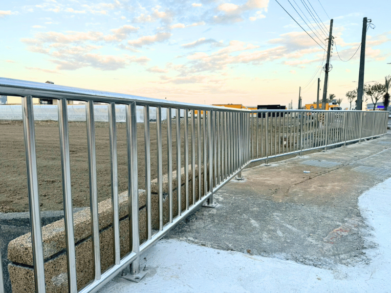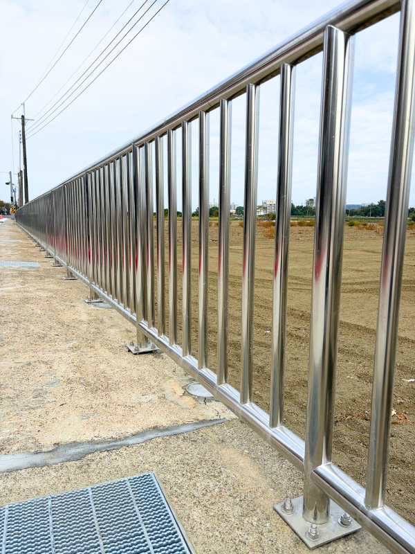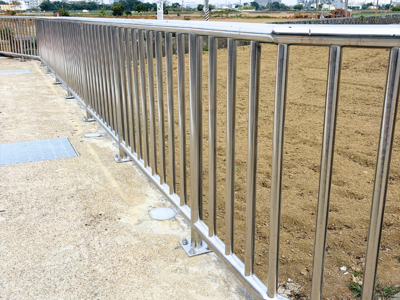 因應人行道通行安全需求,採用高品質不鏽鋼材質製作欄杆系統,結構穩固、耐候耐蝕,長期使用不易變形鏽蝕。整體設計兼顧行人安全、防護機能與市容美觀,有效引導人流動線,提升公共空間使用安全性與耐用年限,為城市步行環境打造安心、耐久的防護設施。