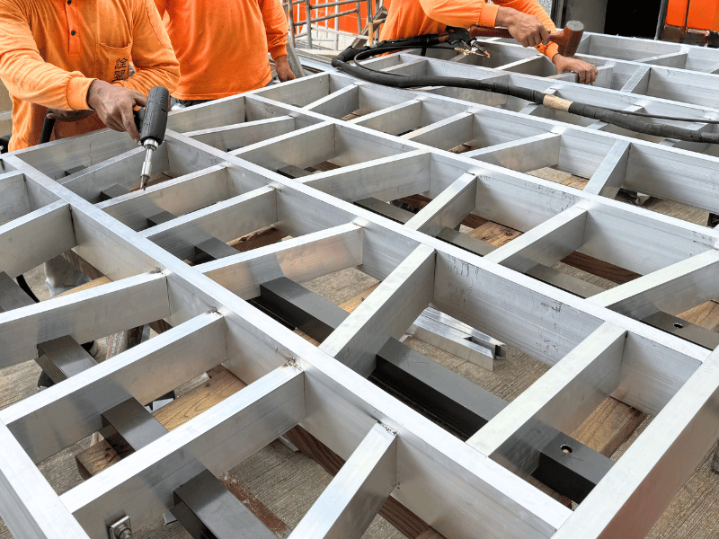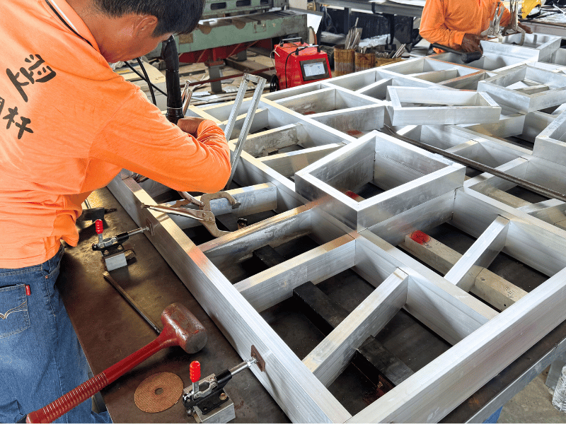 由現場師傅進行鋁合金焊接與組裝,確保結構穩固、尺寸精準,適用於圍牆外圍、防護結構等應用。無論材質為鐵件或鋁件,皆以同等標準把關品質,讓工程更具彈性與完整性。