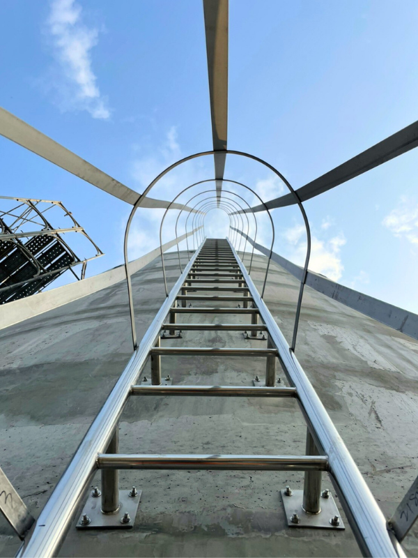 於台南農業循環-虎尾鎮護籠爬梯工程,針對現場維修需求與設備配置進行量身規劃,採用不鏽鋼材質製作爬梯、護籠與固定結構,具備優異的耐腐蝕性,適合長期暴露於戶外或潮濕環境。爬梯依照使用高度與動線進行安全間距設計,護籠能有效降低作業人員在垂直攀登時的風險,並確保巡檢、維護與操作流程更加穩定。整體工程著重於安全性、耐用度與便利性三大面向,讓設備周邊環境更具防護效果,協助業主提升作業效率與整體設施品質。