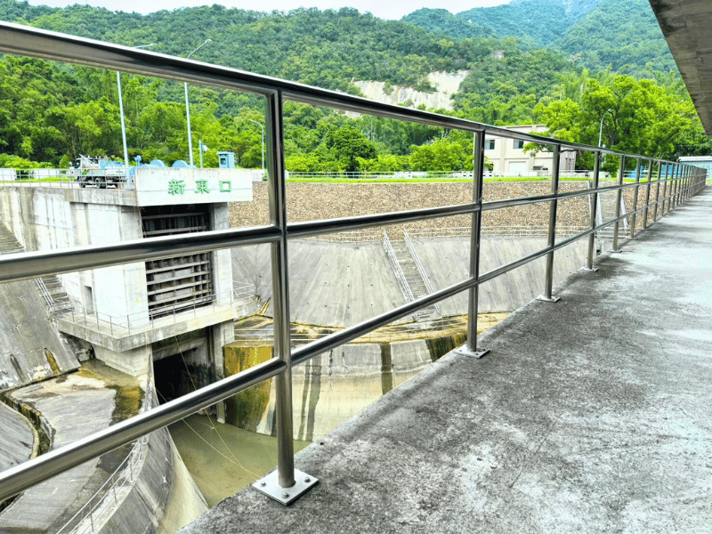 配合新烏山嶺引水隧道工程施工需求,規劃設置不鏽鋼欄杆作為作業區與通行動線之安全防護設施。選用耐候、耐蝕之不鏽鋼材質,結構穩固、承載力佳,能因應隧道周邊潮濕環境與長期使用需求。整體設計兼顧施工安全、耐久性與實用機能,有效降低作業風險,提供工程人員穩定可靠的安全防護,確保工程期間及後續使用之安全品質。